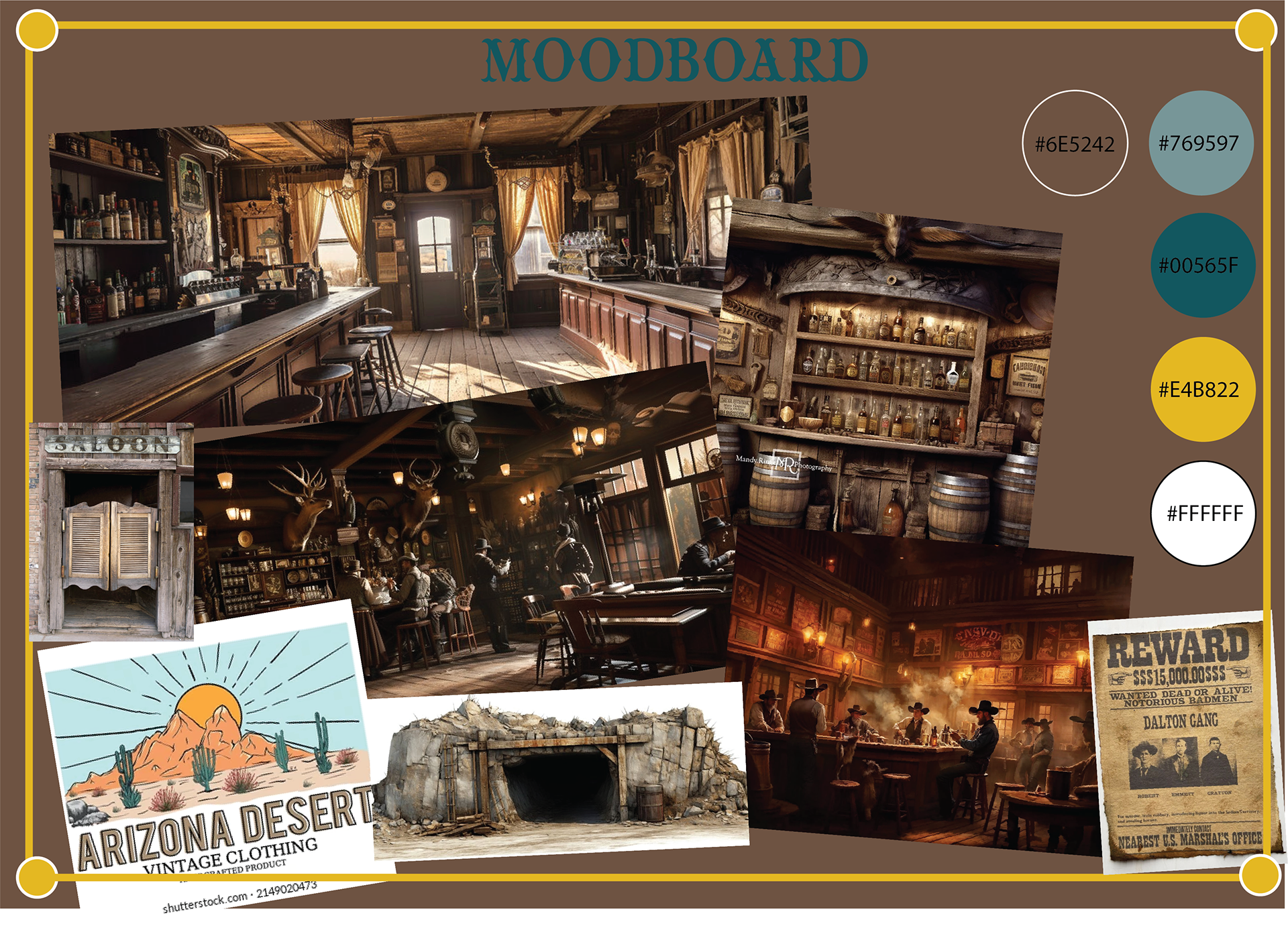 Voor dit project heb ik een winkel ontwerpen die je terug zou kunnen zien in een themapark. De winkel ziet eruit als een voormalige opslagruimte in het Wilde Westen. Dit project combineert storytelling, branding en productdesign om een unieke winkelervaring te creëren.
