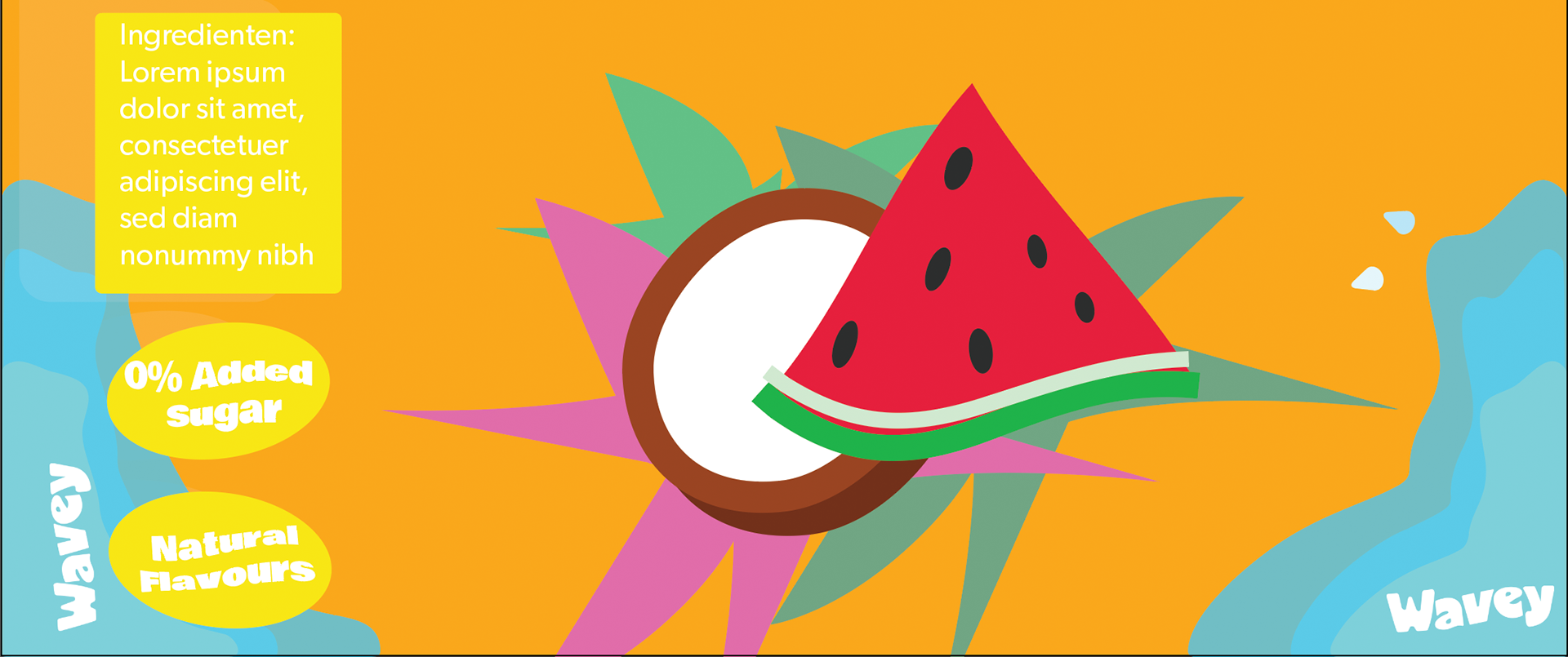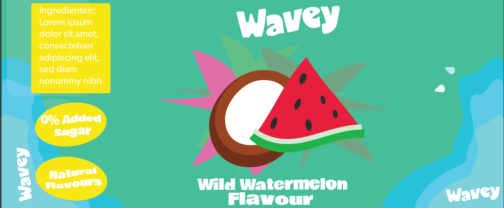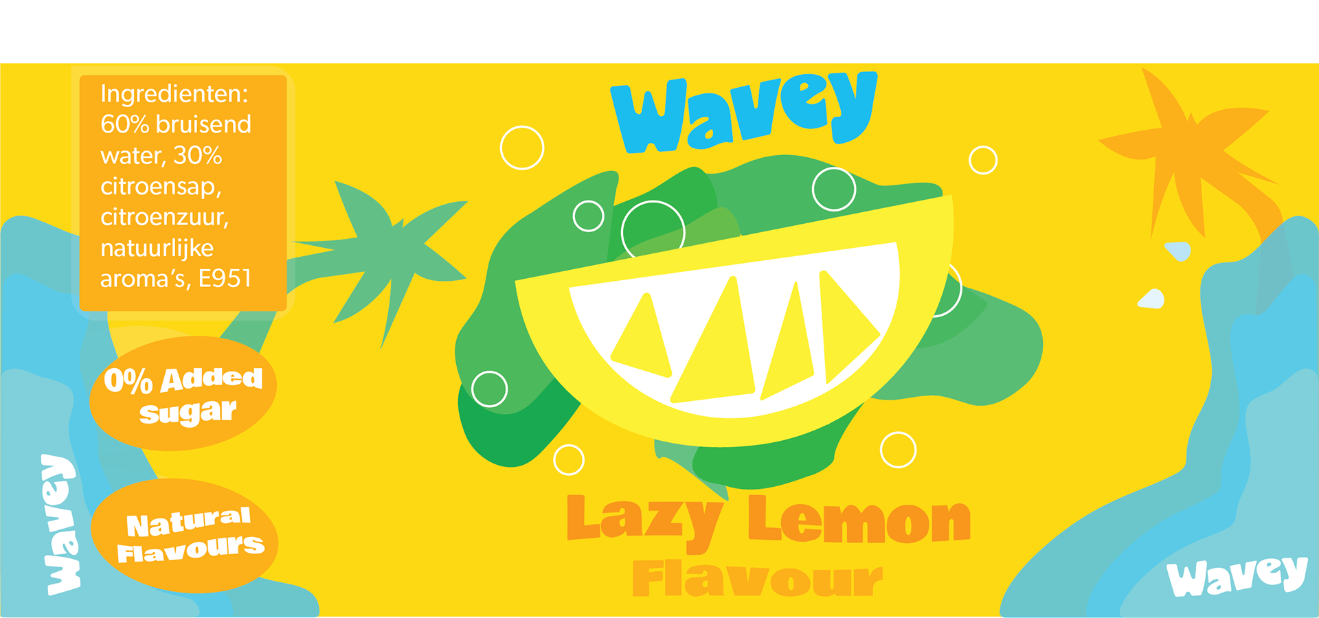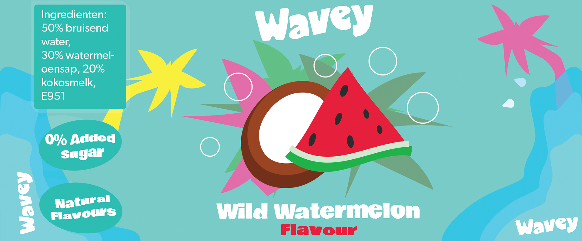 Ken je dat gevoel? Strand, zee zon, lekker warm weer. Dat is het gevoel wat Wavey moet overbrengen. Wavey is een frisdrankmerk gericht op jongeren tussen de 15 en 25 jaar. De stijl is fris, zomers en modern. Vol kleur, eenvoud en herkenning. Zonder dat het goedkoop lijkt. Het ontwerp sluit aan bij de doelgroep en is altijd makkelijk te herkennen als Wavey. Met Wavey heb ik geleerd leren om branding en identiteit te maken en toe te passen, productverpakkingen te maken en marketing en promotie te maken die allemaal dezelfde zomerse, frisse, relaxte stijl hebben. Alles past bij de slogan: ''Meer zomer dan je zonnebril.''